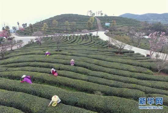 3月21日,茶農(nóng)在福鼎市佳陽畬族鄉(xiāng)后陽村的鼎白茶園采摘茶青(無人機(jī)拍攝)。 福建省福鼎市白茶種植歷史悠久。近年來福鼎市把茶產(chǎn)業(yè)作為精準(zhǔn)脫貧和鄉(xiāng)村振興的戰(zhàn)略性產(chǎn)業(yè)來發(fā)展,通過多項(xiàng)舉措推動茶產(chǎn)業(yè)轉(zhuǎn)型升級,2018年全市茶園面積達(dá)20.3萬畝,茶葉總產(chǎn)量2.7萬噸,涉茶總產(chǎn)值達(dá)56.88億元,有效帶動當(dāng)?shù)剜l(xiāng)村產(chǎn)業(yè)振興和農(nóng)民增收致富。 新華社記者林善傳攝