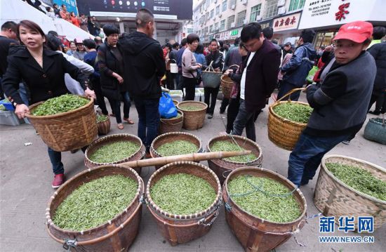 3月21日,茶農(nóng)在福鼎市點(diǎn)頭鎮(zhèn)的福鼎白茶交易市場售賣茶青。 福建省福鼎市白茶種植歷史悠久。近年來福鼎市把茶產(chǎn)業(yè)作為精準(zhǔn)脫貧和鄉(xiāng)村振興的戰(zhàn)略性產(chǎn)業(yè)來發(fā)展,通過多項(xiàng)舉措推動茶產(chǎn)業(yè)轉(zhuǎn)型升級,2018年全市茶園面積達(dá)20.3萬畝,茶葉總產(chǎn)量2.7萬噸,涉茶總產(chǎn)值達(dá)56.88億元,有效帶動當(dāng)?shù)剜l(xiāng)村產(chǎn)業(yè)振興和農(nóng)民增收致富。 新華社記者林善傳攝