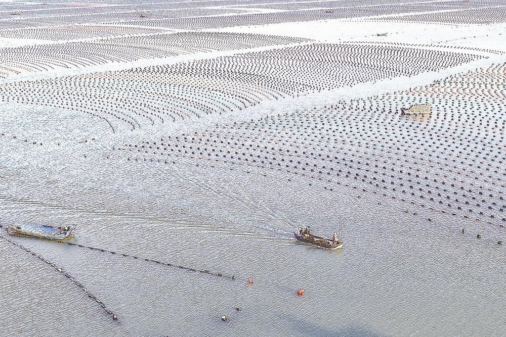 3月14日,福州市連江縣官塢村海域養(yǎng)殖區(qū),漁民們駕駛漁船穿梭于碧波之上,精心管護紫菜、牡蠣、鮑魚,勾勒出一幅“海上春耕”的生動圖景。(王旺旺 攝影報道)