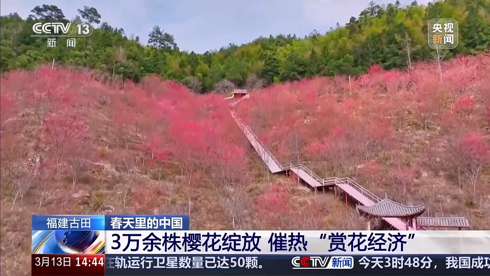 春天里的中國 福建古田 3萬余株櫻花綻放 催熱“賞花經(jīng)濟”