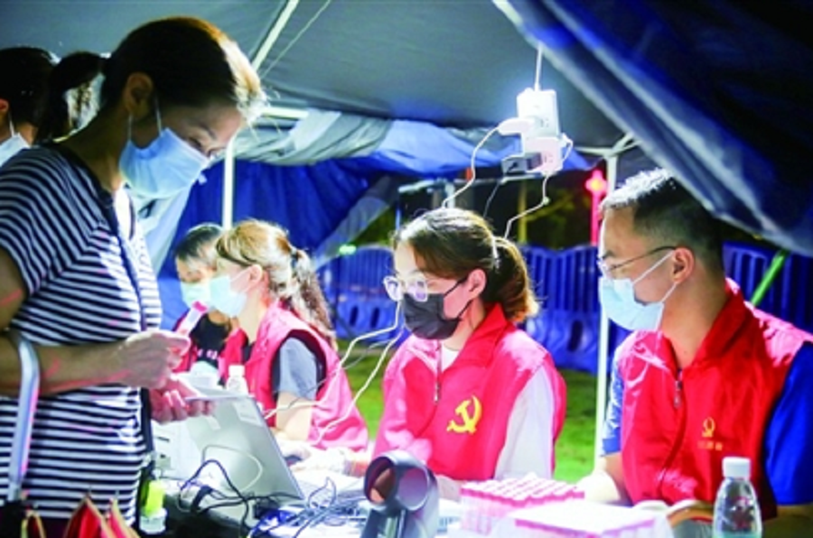 在核酸檢測(cè)工作一線,苦、累、忙并未影響黨員的一顆“紅”心:有二胎媽媽帶著兩個(gè)孩子來,他們主動(dòng)上前接過哭鬧的孩子;有市民因小腿燒傷嚴(yán)重行走不便,他們立即上前攙扶;有不懂普通話的八旬老人,不會(huì)智能手機(jī),他們耐心幫助……
