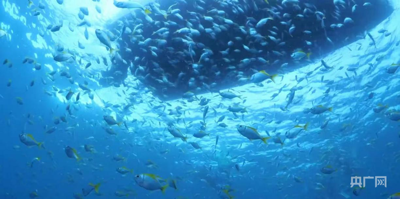 “湛江灣1號(hào)”養(yǎng)殖場(chǎng)底下的金鯧魚(yú)群(央廣網(wǎng)發(fā) 廣東移動(dòng)供圖)