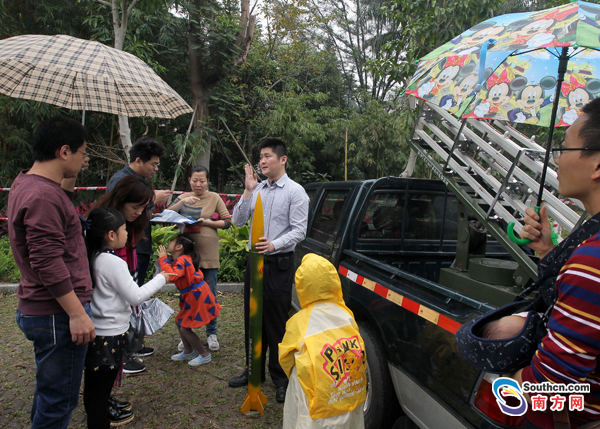 市民冒雨參觀各種氣象觀測設(shè)備