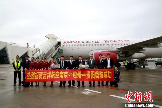 圖為惠州往返南京、貴陽(yáng)航線的首航儀式26日在惠州機(jī)場(chǎng)舉行 潘美樺 攝