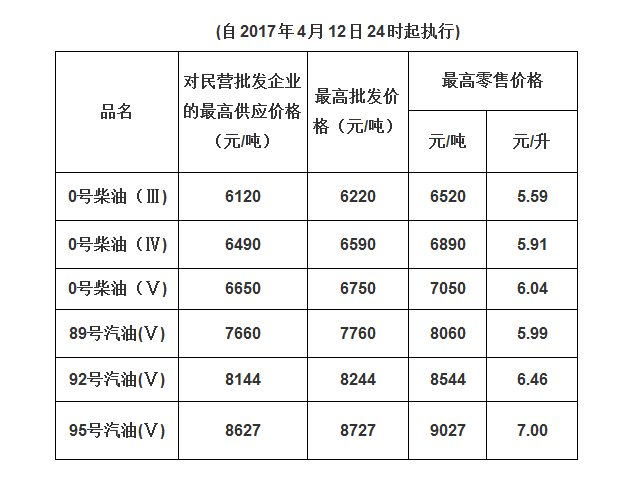 省發(fā)改委表示,根據(jù)國家成品油價格形成機(jī)制,結(jié)合近一段時期國際市場油價變化情況,國家發(fā)展改革委決定自2017年4月12日24時起提高國內(nèi)成品油價格,即在現(xiàn)行價格的基礎(chǔ)上,我省汽、柴油價格每噸分別提高200元和190元,平均每升提高約0.16元。調(diào)整后,我省成品油最高銷售價格可登錄網(wǎng)址http://www.gddrc.gov.cn/zwgk/tzgg/jggg/201704/t20170412_390885.html查閱。