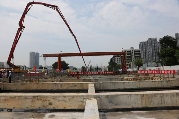 南方網(wǎng)訊 17日,珠海城際灣仔北站施工現(xiàn)場(chǎng)機(jī)器轟鳴。隨著最后一塊頂板的混凝土澆筑完成,灣仔北車站主體結(jié)構(gòu)順利封頂。這也意味著,珠機(jī)城軌一期項(xiàng)目沿線所有地下車站全部完成主體結(jié)構(gòu)施工。