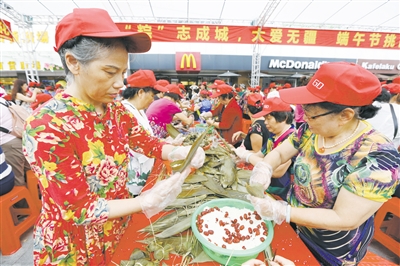 珠海特區(qū)報(bào)訊 昨天是一年一度的端午節(jié),廣東珠海吉大百貨商場(chǎng)門(mén)前一片熱鬧景象,由深圳嘉德文化傳播有限公司主辦,珠海創(chuàng)業(yè)互助會(huì)承辦的“‘粽’志成城,大愛(ài)無(wú)疆”大型慈善公益活動(dòng)在此舉行,為了傳承中華文化習(xí)俗,弘揚(yáng)慈善仁愛(ài)精神,上千市民在此齊動(dòng)手包粽子,成功完成了12萬(wàn)個(gè)粽子,創(chuàng)下上海大世界基尼斯之最——包粽子數(shù)量最多的公益活動(dòng)。