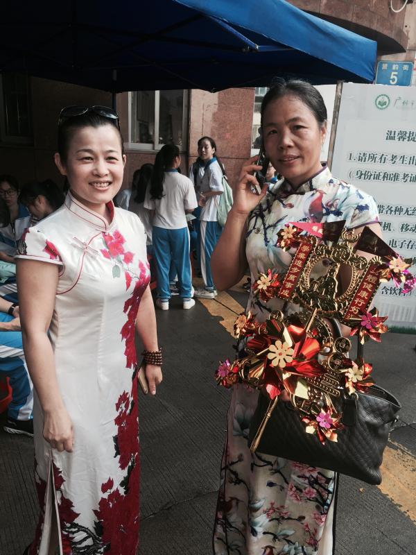 47中班主任穿旗袍帶順風(fēng)車送考,希望同學(xué)“順風(fēng)順?biāo)薄?/span>