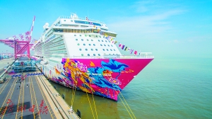 廣州以郵輪旅游為代表的旅游新業(yè)態(tài)發(fā)展迅速,圖為停靠在南沙港的“云頂夢號”郵輪。廣州日報全媒體記者莊小龍 攝