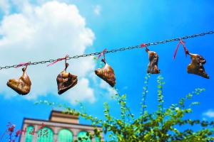 昨日,廣州天氣晴朗,有市民曬起臘肉。廣州日報全媒體記者陳憂子攝