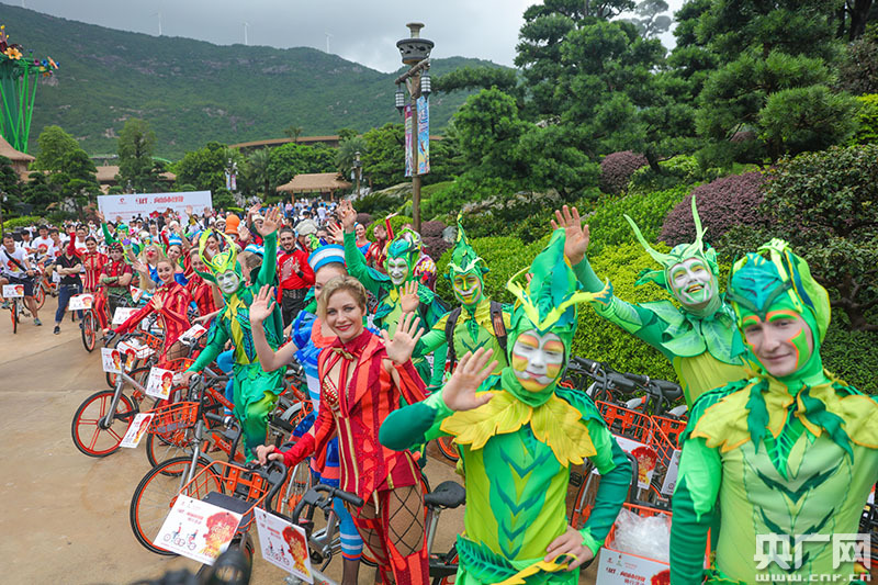 當(dāng)天,數(shù)百輛共享單車在珠海長隆海洋王國中心湖廣場齊齊出發(fā),馬戲演員及廣大市民一起騎行到第四屆中國國際馬戲節(jié)的舉辦地點——珠海長隆橫琴島劇院,既是向珠海致敬,同時也是向廣大市民發(fā)出邀請。