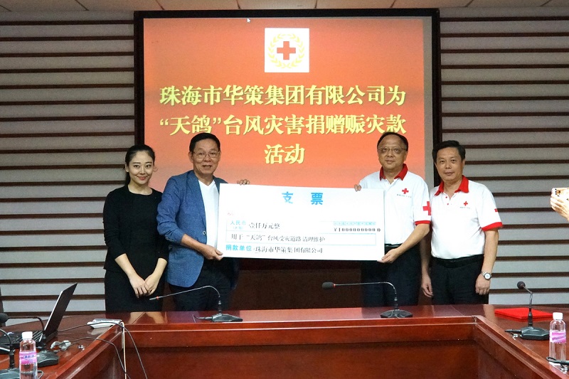 24日下午,珠海市政府副市長(zhǎng)、市紅十字會(huì)長(zhǎng)閻武代表珠海市紅十字會(huì)接受了珠海華策集團(tuán)有限公司1000萬(wàn)元人民幣捐款,該款將專用于珠海的交通道路設(shè)施恢復(fù)。華策集團(tuán)主席楊峰表示,這次“天鴿”來(lái)襲,街頭綠化樹被臺(tái)風(fēng)連根拔起,成了交通障礙物,給民眾出行帶來(lái)阻礙,險(xiǎn)情揪人心,要將危機(jī)當(dāng)做一次演練,加強(qiáng)防范危機(jī)設(shè)備的投入,做個(gè)有社會(huì)公德心的開(kāi)發(fā)商,希望一份微弱之舉能盡快恢復(fù)交通道路設(shè)施,幫助市民早日方便出行。