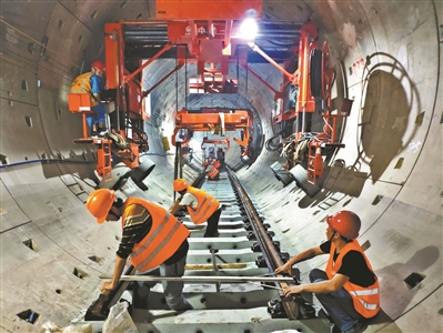 受各種因素制約,地鐵八號線北延段機電工程施工的工期非常緊張。為確保如期實現(xiàn)線路年底開通,廣州地鐵將鋪軌基地由原計劃的5個增加到8個,采取“機鋪”和“人工散鋪”相結合的方式推進施工。