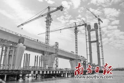 近年來(lái),交通基礎(chǔ)設(shè)施建設(shè)是廣東“補(bǔ)短板”工作的重要一環(huán)。圖為正在建設(shè)中的深茂鐵路潭江特大橋。全媒體記者 吳偉洪 攝