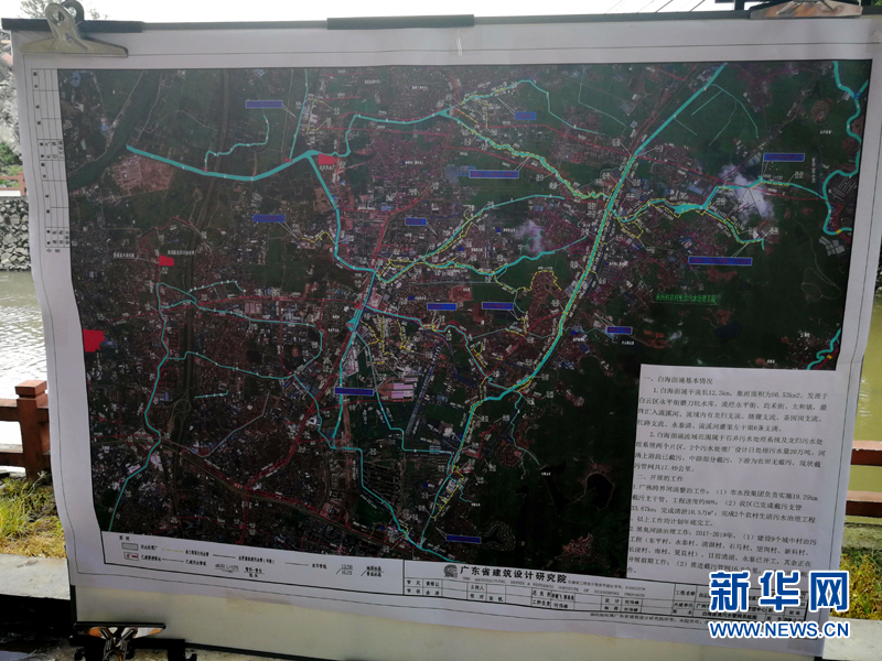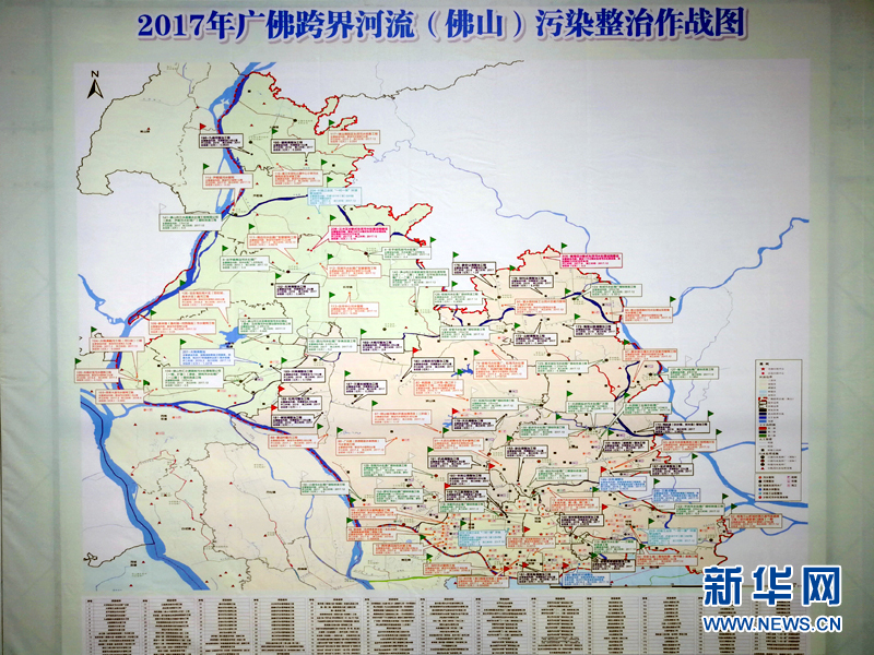 佛山在河邊掛出“2017年廣佛跨界河流(佛山)污染整治作戰(zhàn)圖”。新華網(wǎng)記者 盧鑒 攝