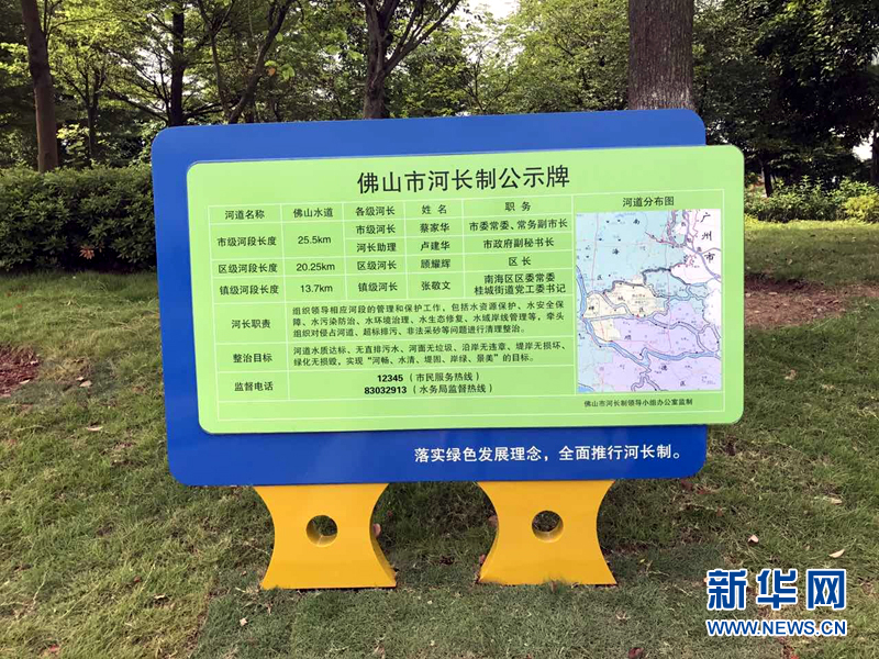 佛山水道的“河長制公示牌”。新華網(wǎng)記者 盧鑒 攝