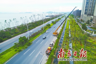 25日下午,經(jīng)過緊急清理,珠海金灣區(qū)機(jī)場(chǎng)路上大部分倒下的樹木已被清理,交通恢復(fù)如常。關(guān)銘榮 攝