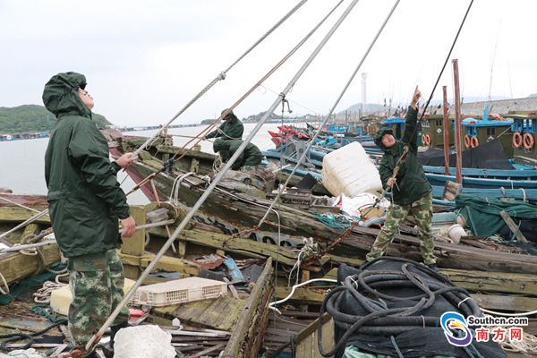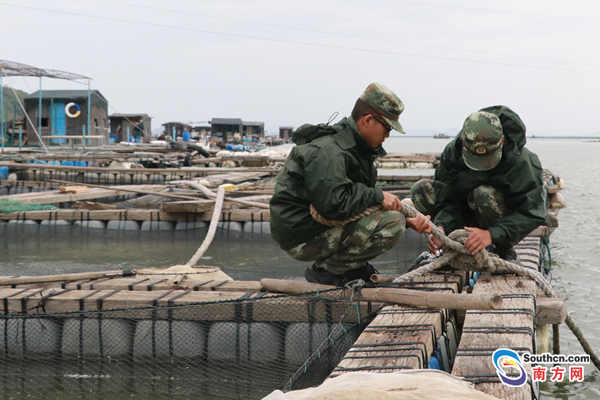 在饒平縣柘林港灣,潮州邊防官兵一大早就進(jìn)行排查,勸阻漁民歸港避風(fēng),并對(duì)留守在避風(fēng)船、養(yǎng)殖魚排及沿海房屋內(nèi)的漁船民進(jìn)行防風(fēng)宣傳和囑咐,并協(xié)助他們做好加固工作,要求他們減少戶外零碎物件,防止在臺(tái)風(fēng)天氣中出現(xiàn)飛物砸人的情況發(fā)生。據(jù)悉,潮州全市出海船只684艘全部回港避風(fēng),海上作業(yè)人員4916人全部撤離上岸,饒平縣“三無”船只2296艘已全部進(jìn)港避風(fēng)。