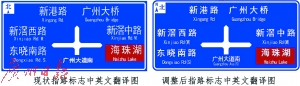 據(jù)廣州日報(bào)報(bào)道,昨日,廣州市住建委發(fā)布《廣州市重點(diǎn)區(qū)域道路交通標(biāo)識(shí)系統(tǒng)(完善)設(shè)計(jì)指引 》(以下簡稱《指引》),廣州市道路交通系統(tǒng)對道路交通標(biāo)識(shí)進(jìn)行了統(tǒng)一規(guī)格調(diào)整,并統(tǒng)一了路名的翻譯格式。