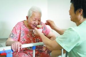 廣州市頤壽養(yǎng)老院的護(hù)工在喂享受長(zhǎng)護(hù)險(xiǎn)的98歲黎艷珍婆婆食午飯。