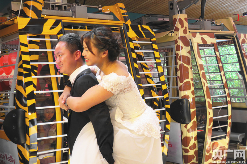 坐著纜車,看著下面的河馬、長頸鹿等野生動(dòng)物,新人們顯得格外興奮,互相拿手機(jī)拍照。最浪漫的事,或許就是生命中最重要的時(shí)刻,有你在身旁吧!