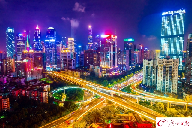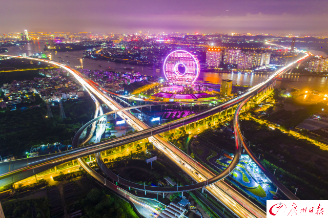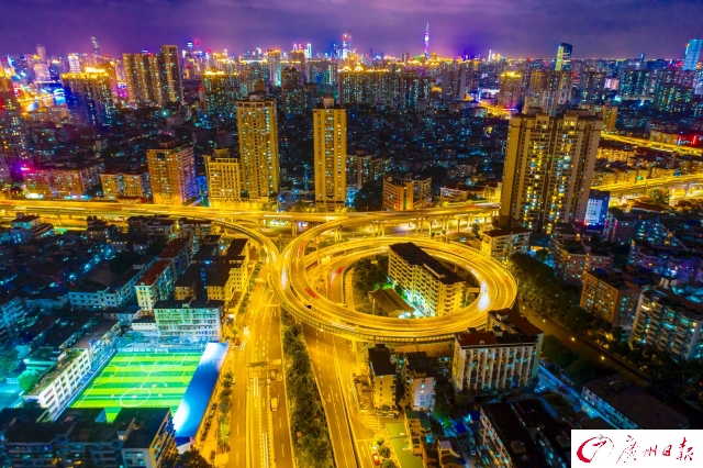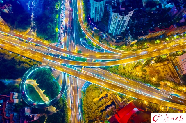 記者在傍晚時(shí)分航拍了廣州城內(nèi)川流不息的交通樞紐,用全新視角為你展現(xiàn)燈火通明、流光溢彩、氣勢(shì)磅礴的廣州之夜。夜色下的廣州立交橋車(chē)水馬龍,如同一條“黃金彩帶”;東塔、西塔和廣州塔更是交相輝映,美得讓人窒息。