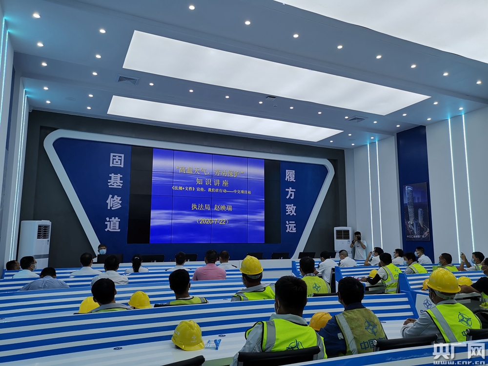 橫瀝項目的工人在安全體驗館進行安全知識培訓。(央廣網發(fā) 通訊員供圖)