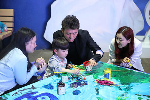 I Do基金愛心天使馬艷麗、李乃文、張皓然、極客少年團(tuán)(李歌洋、萬翔、馬爾辰)也來到了活動(dòng)現(xiàn)場(chǎng),與孩子們互動(dòng)游戲,觀看精彩的海豚表演,并且一起用畫筆描繪心中的大海。深邃遼闊的幽暗海洋、魚群、水草、蝦蟹……充滿純真童趣的畫布漸漸被涂滿色彩,而整個(gè)會(huì)場(chǎng)仿佛變成了游樂園,充滿孩子們的歡笑聲。