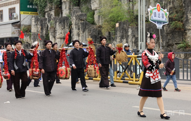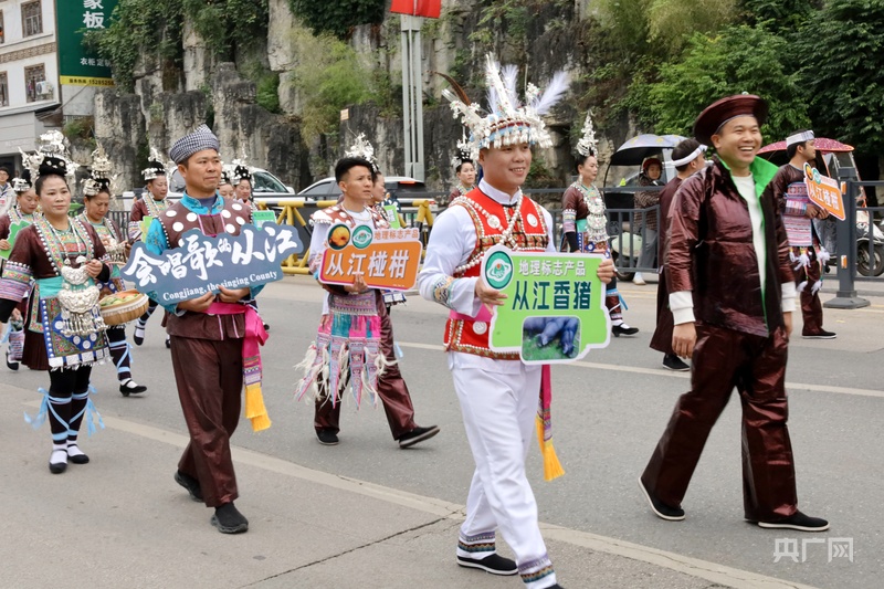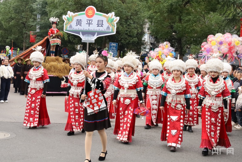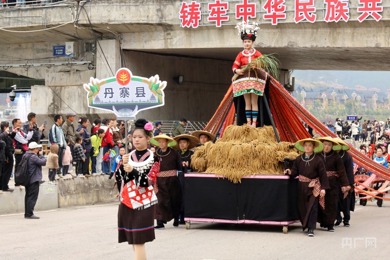 當(dāng)天下午,2025中國農(nóng)民豐收節(jié)村歌大賽總決賽民族團(tuán)結(jié)大巡游在劍河縣精彩上演。來自貴州省黔東南苗族侗族自治州16個縣(市)的1000余名群眾組成巡游方陣,共慶豐收喜悅,共展民族風(fēng)采。