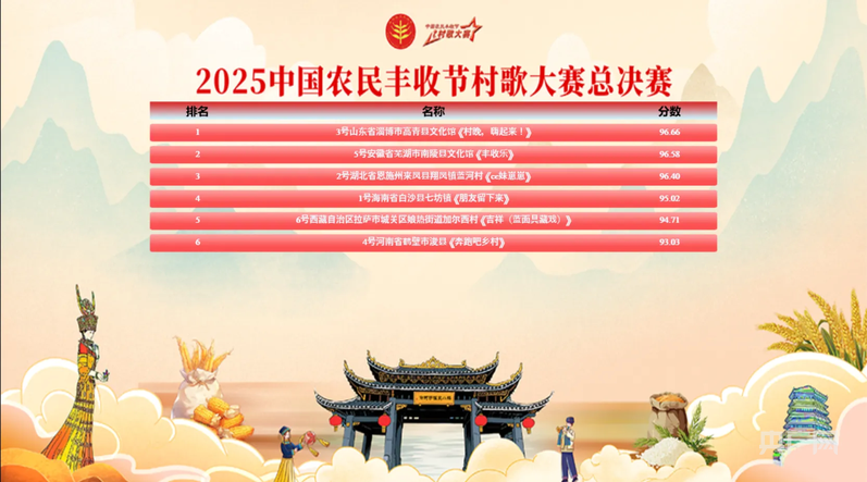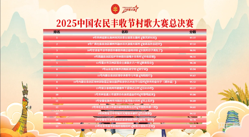 2025中國農(nóng)民豐收節(jié)村歌大賽總決賽正賽排名(央廣網(wǎng)發(fā) 劍河縣委宣傳部供圖)