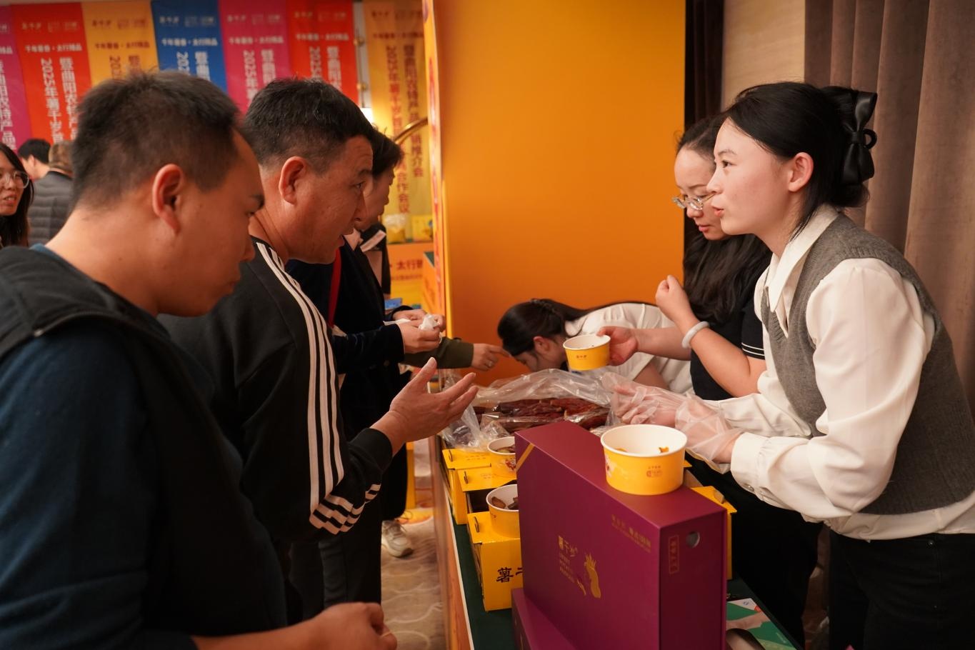 活動(dòng)現(xiàn)場精心設(shè)置了曲陽特色農(nóng)產(chǎn)品免費(fèi)試吃品嘗區(qū),除“薯千歲”系列甘薯產(chǎn)品外,現(xiàn)場還準(zhǔn)備了曲陽燒餅、有機(jī)雜糧、特色果蔬等眾多地方名優(yōu)產(chǎn)品。香氣四溢的展位前人頭攢動(dòng),群眾品嘗后,對(duì)曲陽農(nóng)產(chǎn)品的品質(zhì)贊不絕口。這一沉浸式體驗(yàn)環(huán)節(jié),不僅成功“圈粉”,更以最直接的方式提升了產(chǎn)品認(rèn)知度,激發(fā)了經(jīng)銷商們的采購與合作熱情,為后續(xù)的產(chǎn)銷訂單簽訂奠定了堅(jiān)實(shí)基礎(chǔ)。