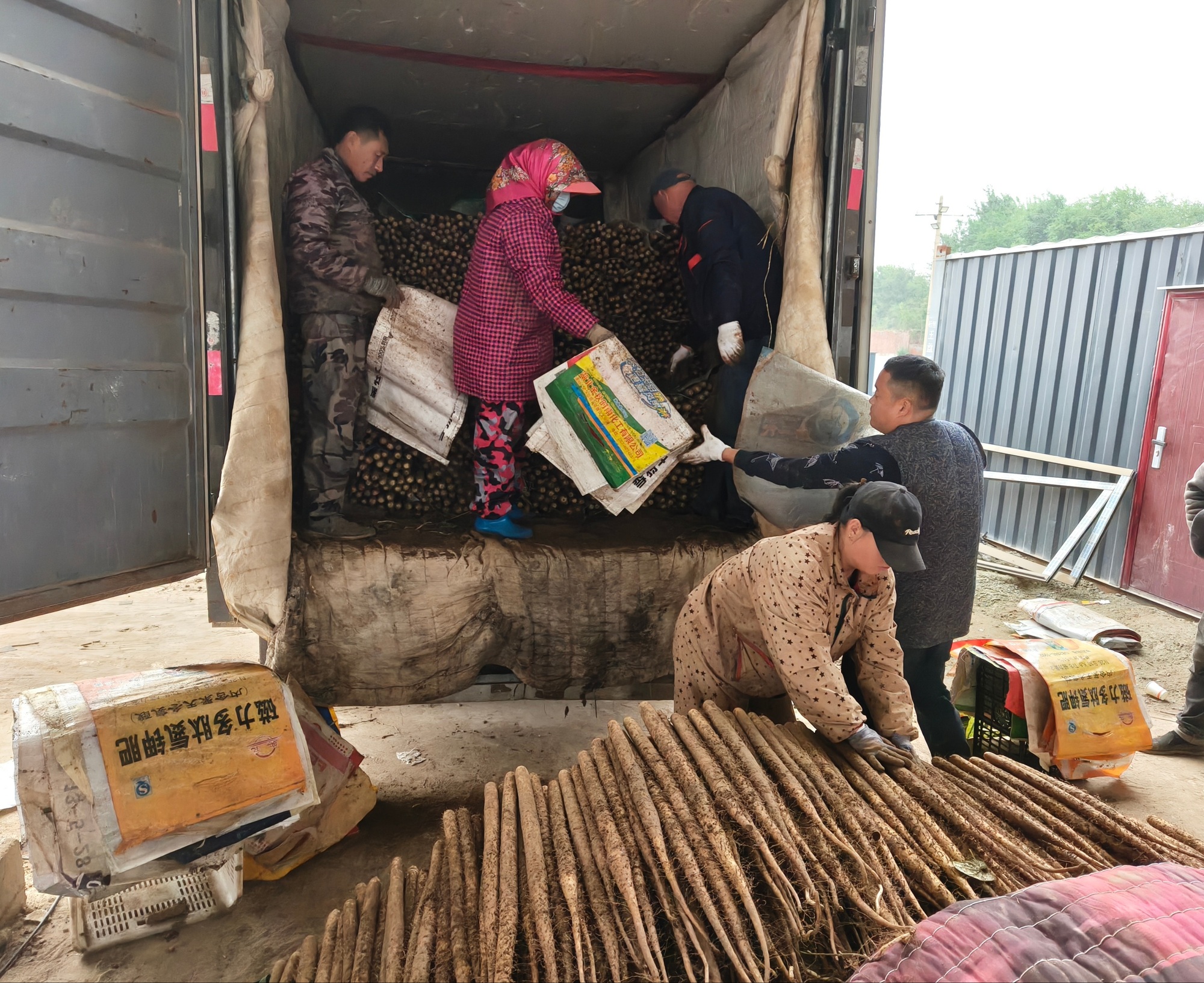 搬運工正在將山藥裝車(趙思琪 攝)