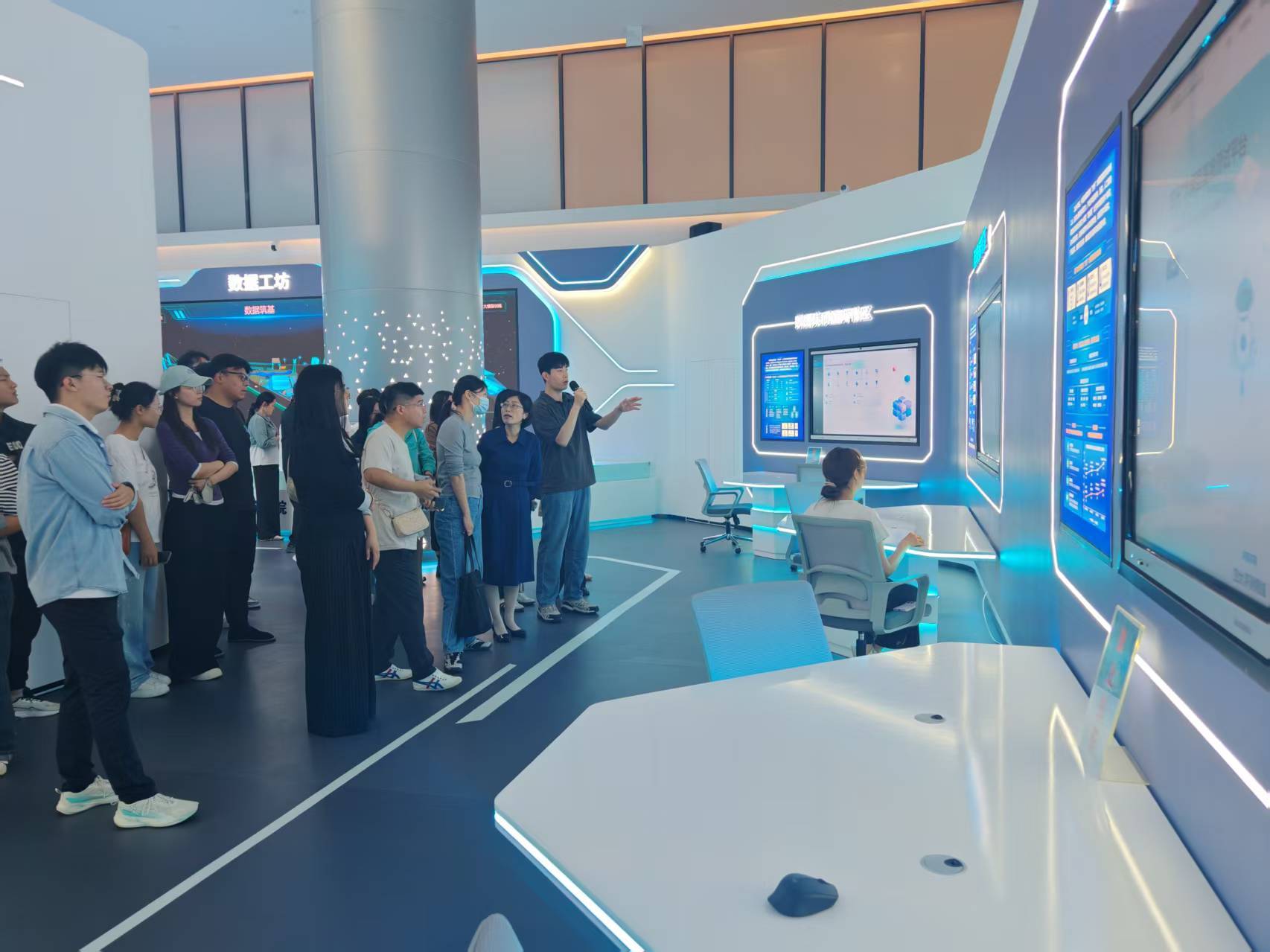 工作人員介紹人工智能數(shù)據(jù)處理和質(zhì)量測(cè)評(píng)中心(劉奧文 攝)