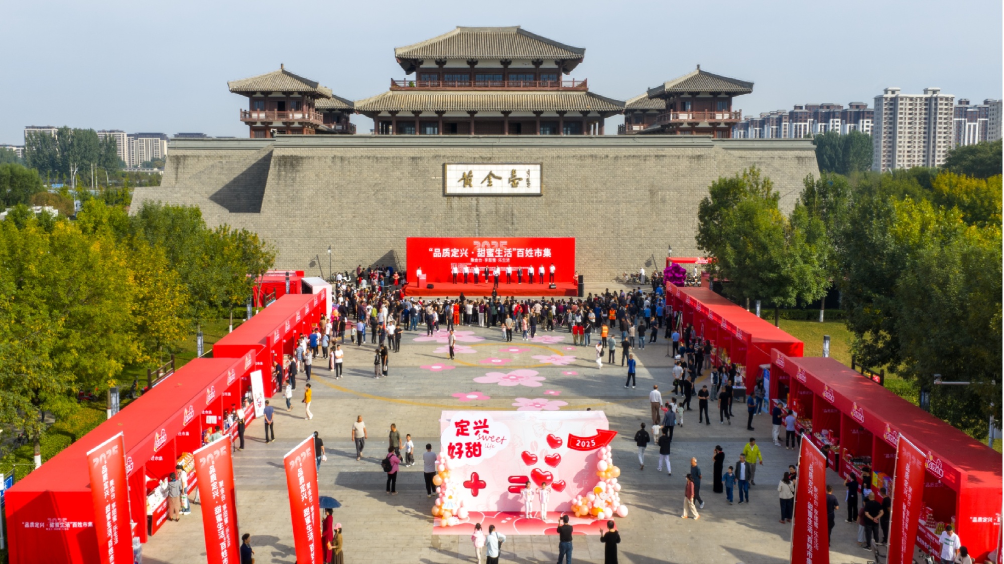 10月1日,河北保定定興縣2025年“品質定興·甜蜜生活”百姓市集在該縣黃金臺廣場盛大啟幕。