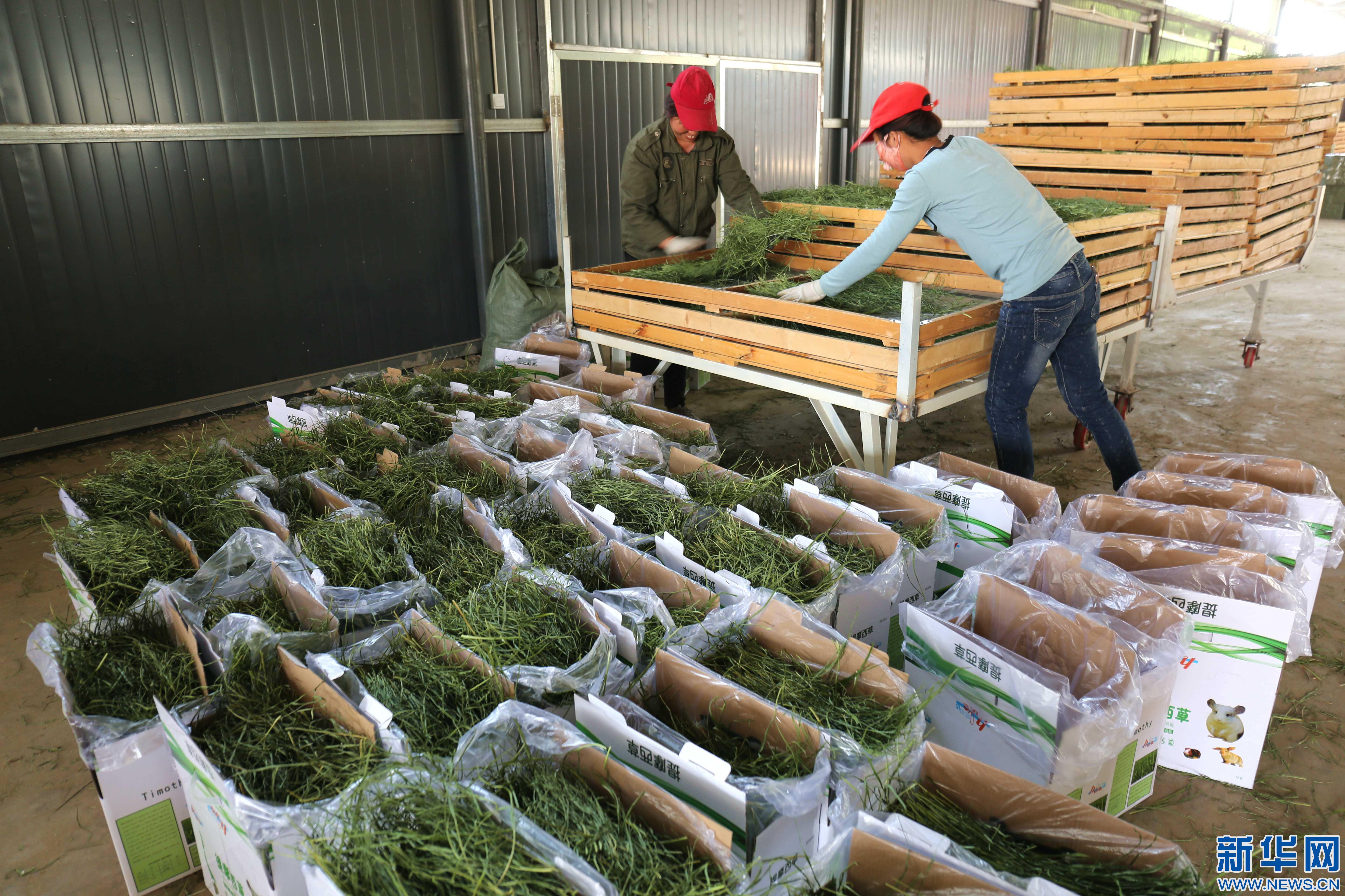 5月10日,河北省平泉縣道虎溝鄉(xiāng)一寵物草加工企業(yè)員工在包裝烘干后的寵物草。(新華社發(fā) 劉環(huán)宇攝) 近年來(lái),河北省承德市平泉縣道虎溝鄉(xiāng)引導(dǎo)當(dāng)?shù)剞r(nóng)民調(diào)整產(chǎn)業(yè)結(jié)構(gòu),因地制宜發(fā)展寵物草種植加工產(chǎn)業(yè),引進(jìn)苜蓿草、小麥草、大麥草等7個(gè)品種的寵物草,產(chǎn)品遠(yuǎn)銷北京、天津、上海等地,帶動(dòng)當(dāng)?shù)剞r(nóng)民在家門口就業(yè)致富,拓寬精準(zhǔn)脫貧新路徑。 -