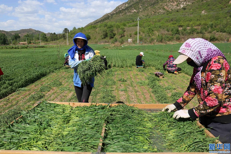 5月10日,河北省平泉縣道虎溝鄉(xiāng)農(nóng)民在收獲小麥草。(新華社發(fā) 劉環(huán)宇攝) -