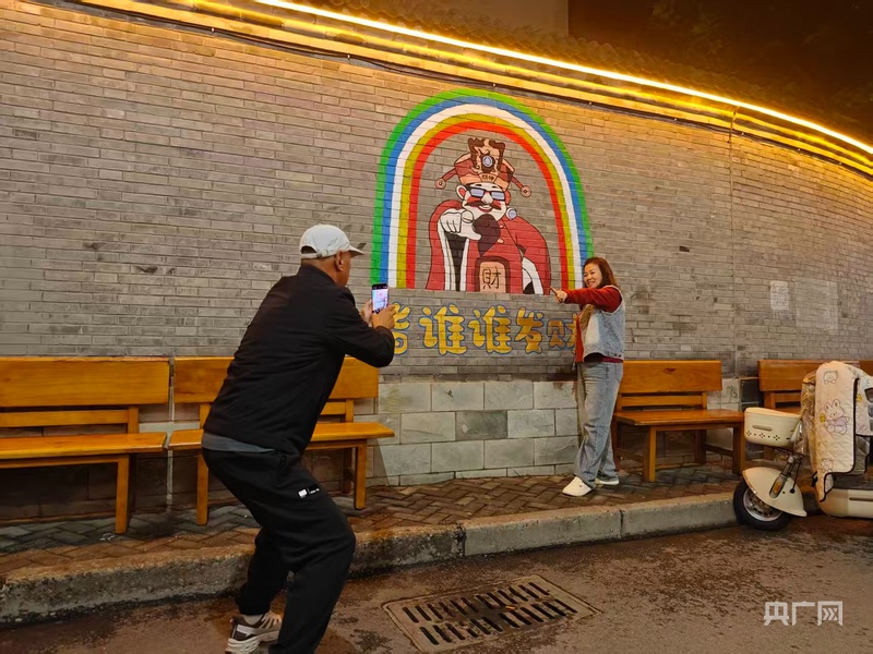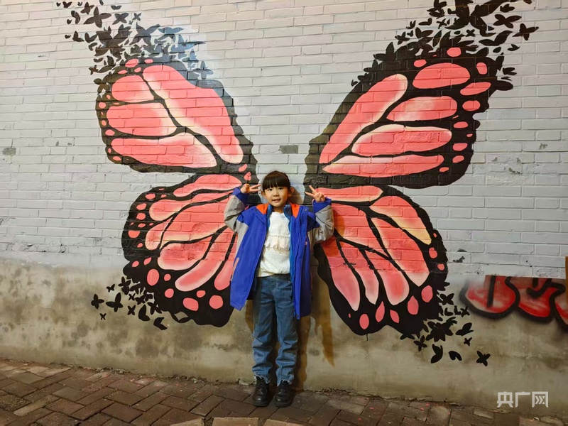 小游客在菊胡同彩繪墻打卡(央廣網(wǎng)記者 王藝霖 攝)