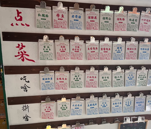 夜游菊胡同,味蕾的體驗必不可少。當記者行至“有啥吃啥咱家老菜館”時,立刻被店內(nèi)獨特的氛圍所吸引。老式腳踏縫紉機、瓷器碎片拼貼墻,無不透著濃濃的懷舊氣息,而最引人注目的,莫過于那面貼滿“日歷”的點餐墻。