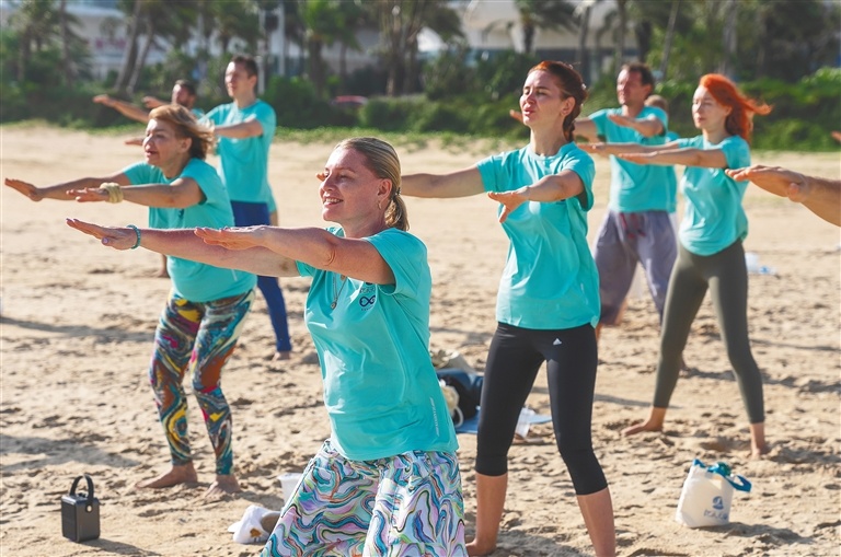 30余名外國(guó)學(xué)員海邊學(xué)太極拳