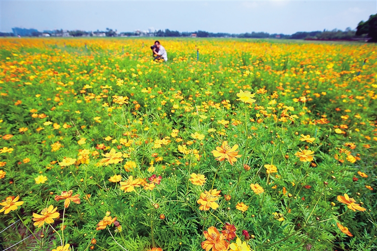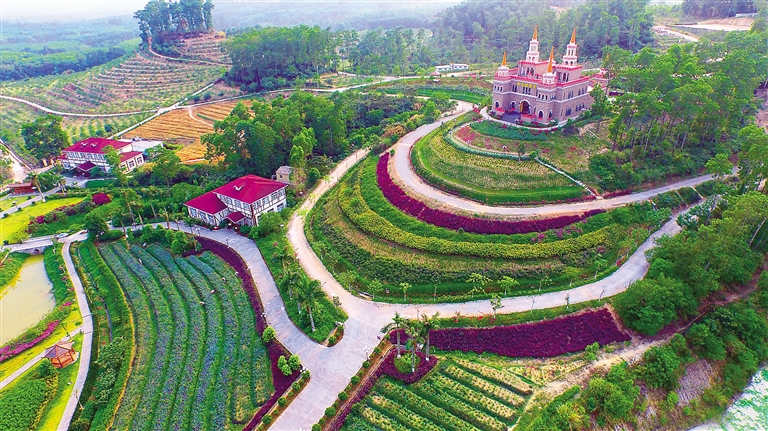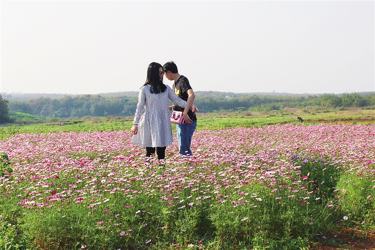 萬寧市東山嶺腳下的永范村,村民們自籌自建的千畝花海基地。 海南日報記者 張杰 通訊員 曾覺 攝