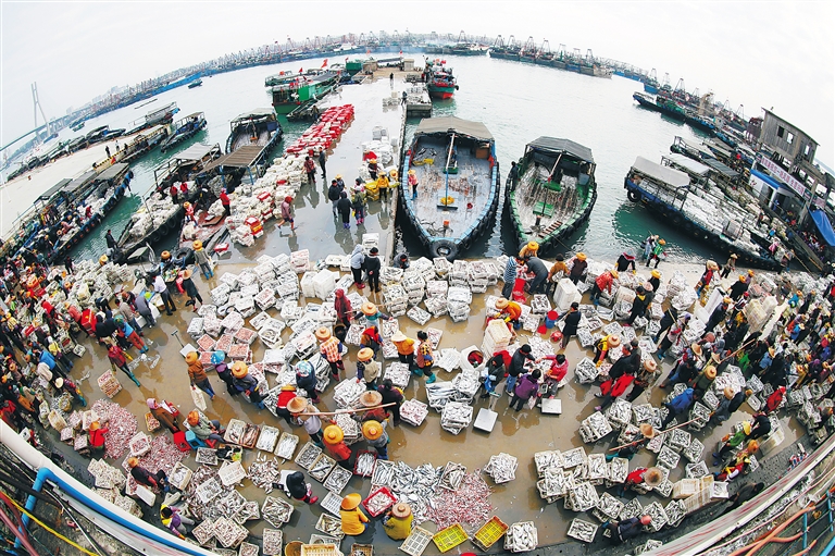 儋州市白馬井漁港一派繁忙景象。