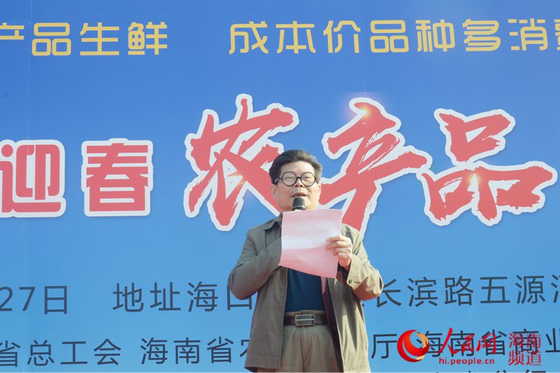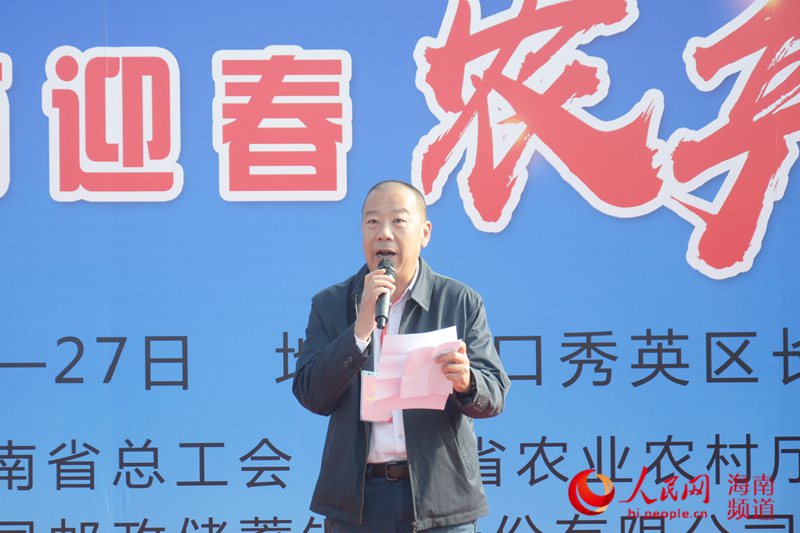 人民網(wǎng)海口1月23日電(樊歡迪)1月23日上午,第二屆海南迎春農(nóng)產(chǎn)品展銷會(huì)在?谖逶春芋w育場(chǎng)熱烈開幕,展銷會(huì)持續(xù)時(shí)間至1月27日。海南省總工會(huì)黨組書記、常務(wù)副主席王全,海南省總工會(huì)副主席馬東旭,海南省農(nóng)業(yè)農(nóng)村廳廳長(zhǎng)許云出席開幕儀式。