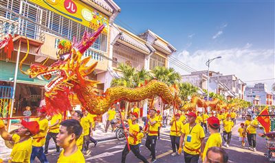 舞獅龍,賽肥雞,傳統(tǒng)民俗鬧元宵。400年歷史的臨高木偶戲里聽(tīng)瓊音,歌舞一體的儋州調(diào)聲里品民歌,祭禮演變的瓊海賽肥雞里觀(guān)民俗……這一天,瓊州大地有滋有味,有聲有色。
