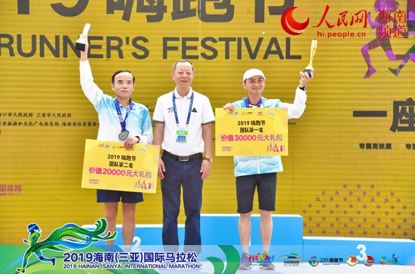 在馬拉松成績(jī)決出之后不久,嗨跑節(jié)同時(shí)頒出雙賽跑團(tuán)獎(jiǎng)項(xiàng)。“2019嗨跑節(jié)”設(shè)置了全國首個(gè)雙賽跑團(tuán)獎(jiǎng)勵(lì)。以團(tuán)隊(duì)為主體,同時(shí)參與海口、三亞兩場(chǎng)馬拉松賽事,隊(duì)內(nèi)男、女成績(jī)前三名累加,排名靠前的跑團(tuán),將分別獲得不同價(jià)值的獎(jiǎng)勵(lì)。