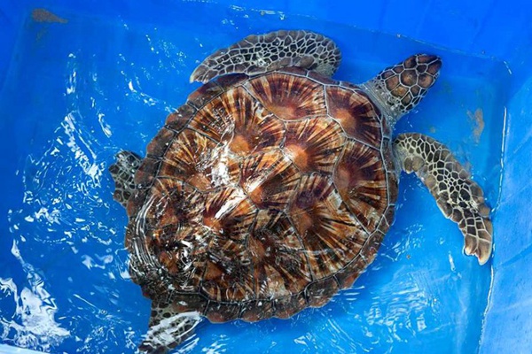 清晨7點起,綠海龜便一直在海岸邊徘徊,注意到綠海龜?shù)南瞾淼枪ぷ魅藛T跟蹤了綠海龜200米,判斷綠海龜可能是生病或者受傷,便立即決定將其帶上岸,聯(lián)系藍絲帶海洋保護協(xié)會,求助專業(yè)人士。