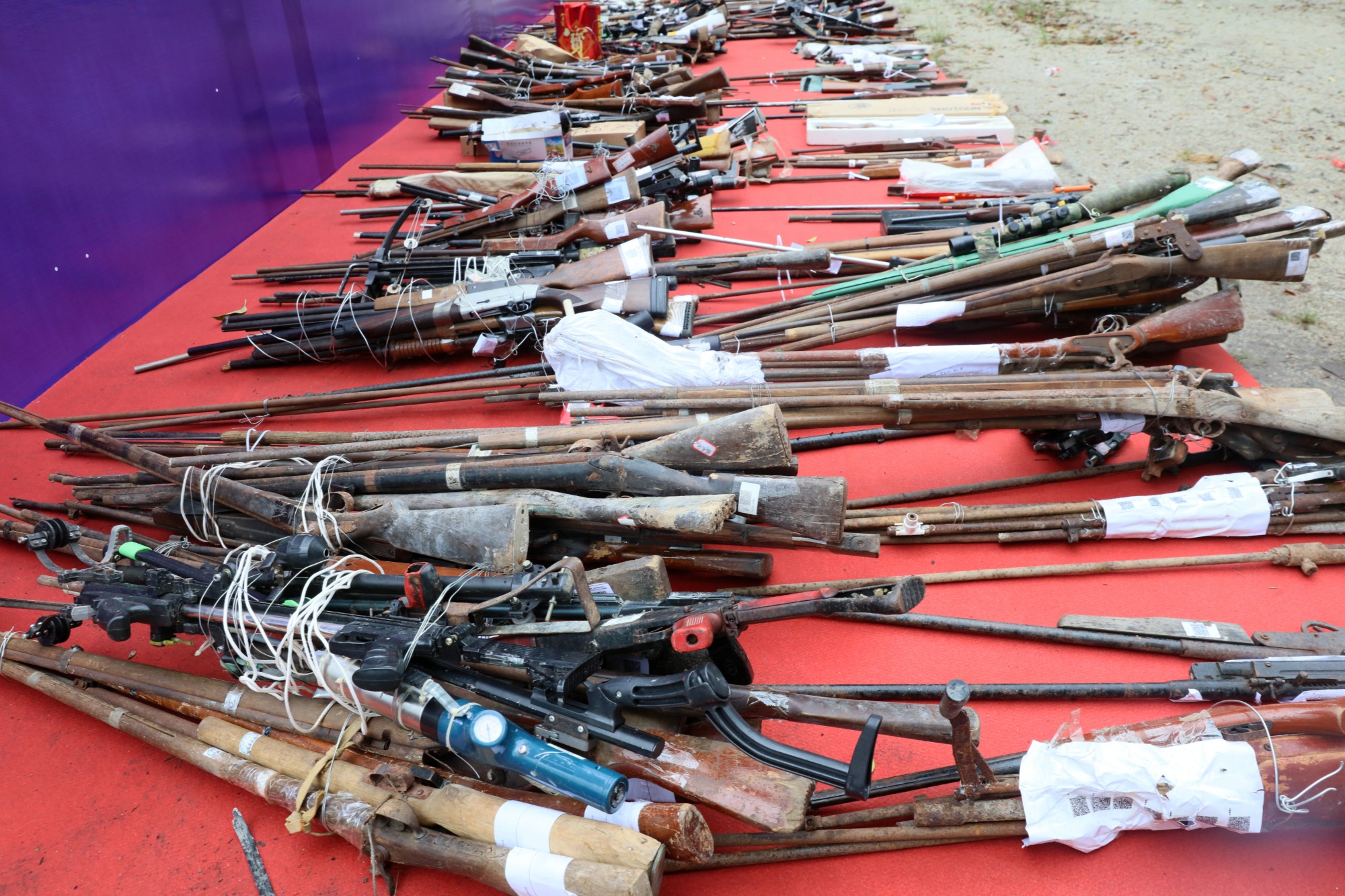待銷毀的非法槍支及零部件(央廣網(wǎng)發(fā) 海南省公安廳供圖)
