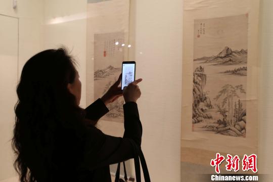 觀眾在“婁東畫派”展廳前拍照。(張云 攝)