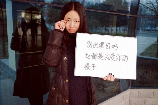 央廣網(wǎng)河南分網(wǎng)消息 據(jù)網(wǎng)易報道:近日,有媒體曝光了某女生用20個造型追男友的瘋狂行為,該女生長相甜美,站在山大校園的大道上,手拿寫字板,寫著一系列愛的宣言拍了一組照片,包括“謝謝你在我生病時,拿著藥丸和水,虎視眈眈地看我吞下去”,“對不起,我總是討厭你忙的時候無視我”!皠e厭煩我好嗎,這都是我愛你的樣子”等等,并強調(diào)“2014,絕對要在一起”,霸氣大膽之舉引發(fā)了無數(shù)網(wǎng)友圍觀。細說起來,男女生大膽求愛最近發(fā)生可不少,有成功的也有失敗的,甚至小學生也不遑多讓,實在教人不忍直視。