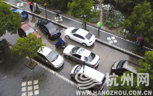 央廣網(wǎng)河南分網(wǎng)消息 據(jù)杭州網(wǎng)報(bào)道:昨天下午3點(diǎn)10分,我們到崇文實(shí)驗(yàn)學(xué)校門口看了看。學(xué)校在近江小區(qū)內(nèi),小區(qū)道路比較窄。學(xué)校門口的路大約七八米寬,有一側(cè)是固定停車位,一旦有車在學(xué)校門口停留,就會發(fā)生擁堵。