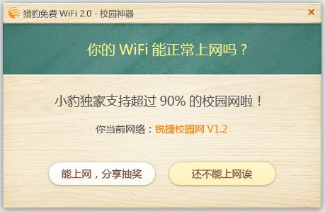 據(jù)悉,獵豹免費(fèi)WiFi2.0-校園神器對(duì)170多所校園網(wǎng)絡(luò)環(huán)境進(jìn)行了現(xiàn)場(chǎng)測(cè)試,解決銳捷、天翼、netkeeper系列(包括netkeeper、閃訊、e信)、星空極速、inode 等主流校園網(wǎng)客戶端不能分享WiFi上網(wǎng)的難題。